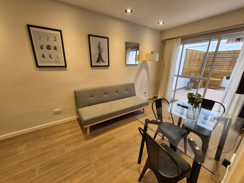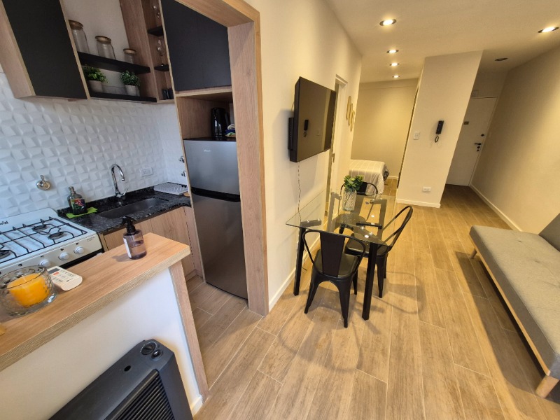 1 Ambiente divisible, cocina incorporada con barra, baño completo y patio con lavadero.
